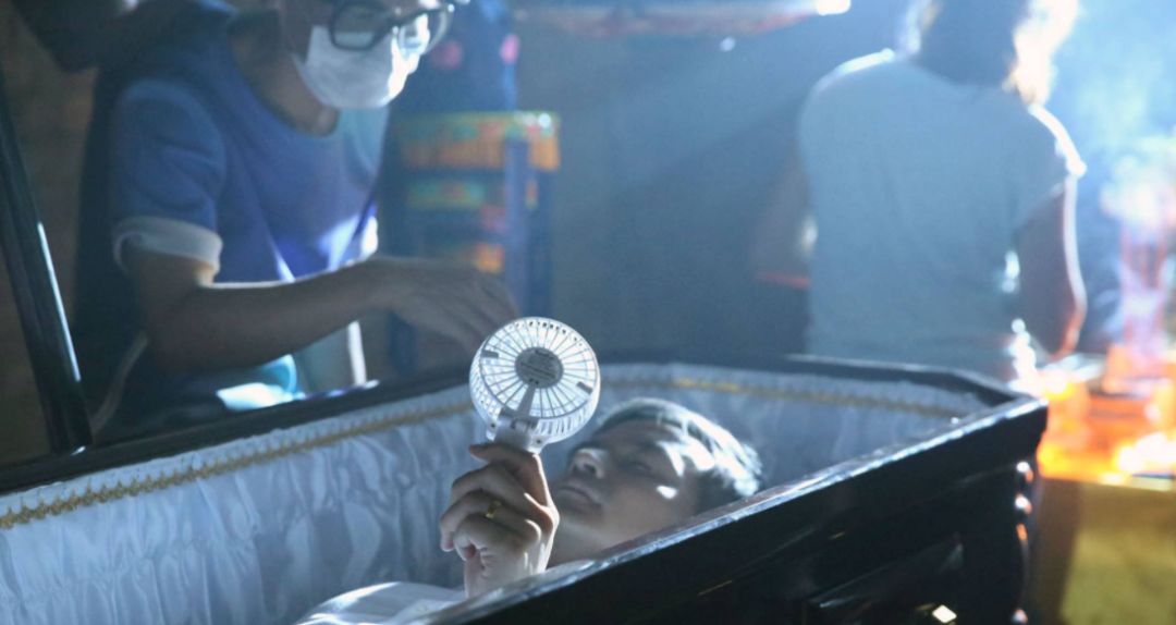 为了演好剧中角色,范文芳和李铭顺非常敬业,先是李铭顺“躺进棺材”——谈到这幕“不吉利”的戏,李铭顺打趣道,自己躺在棺材里面的时候,满脑子想的却是怎么打高尔夫球~