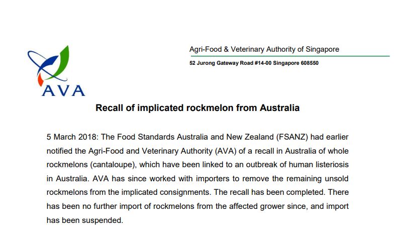 不过,大家也不用过于紧张,因为所有从澳洲进口的哈密瓜都已经在新加坡下架了。为保险起见,农粮局也对新加坡在售的哈密瓜进行了抽样检查。因此,大家可以放心食用目前在市面上销售的哈密瓜~