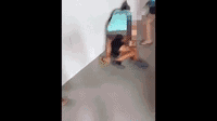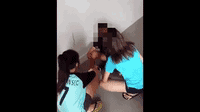 但是说着说着,两名身穿蓝色上衣的女生便开始出手——掌掴、脚踩。