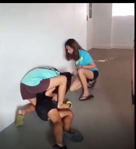 这起学生霸凌事件发生在2月15日,地点是惹兰苏丹第19座组屋。只见画面中,三名女生先是蹲坐在组屋楼层里谈论着什么。