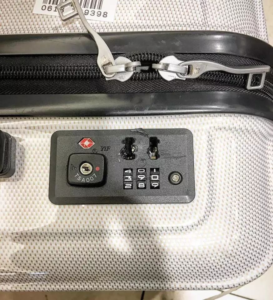 从图片中可以看到撬行李箱的方式非常野蛮,密码锁被“暴力破拆”!