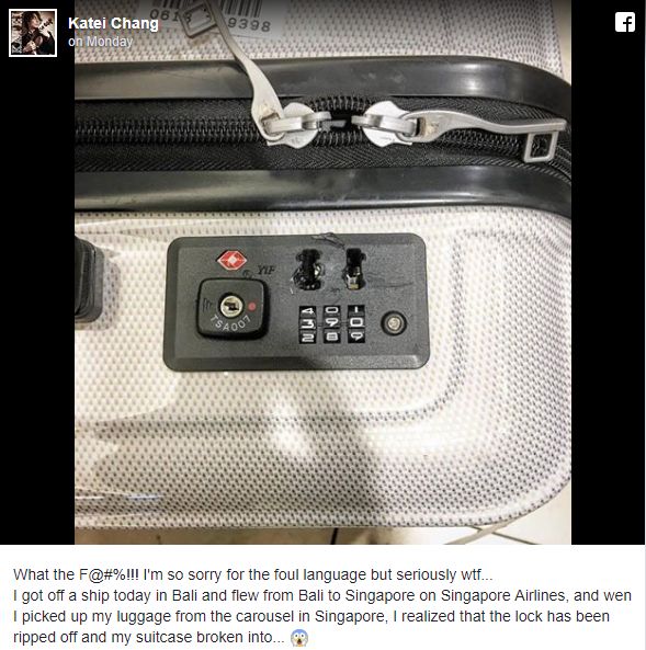 万万未想到,当他抵达樟宜机场领回行李时,却发现自己的行李箱竟然被撬开!