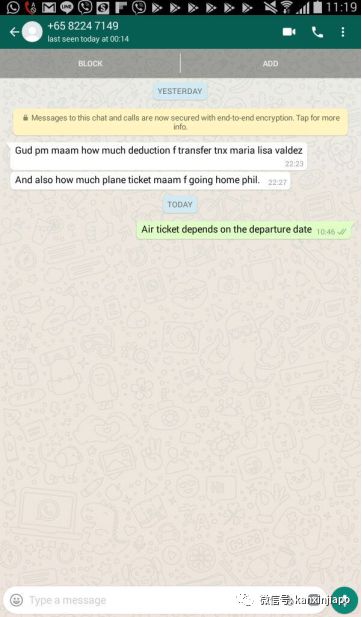 可是她非常的坚持说:“平时我朋友来找我,我都会短信告诉你(她指的是上周同事家女佣来给她送药的事情)。既然你不相信我,那我也没法继续工作下去了,你买张机票明天送我回菲律宾吧。”