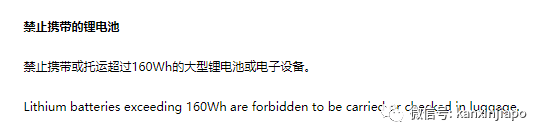 不仅如此,充电宝也被视为备用锂电池,但是只能是100Wh-160Wh的充电宝。超过160Wh的充电宝是禁止携带的。
