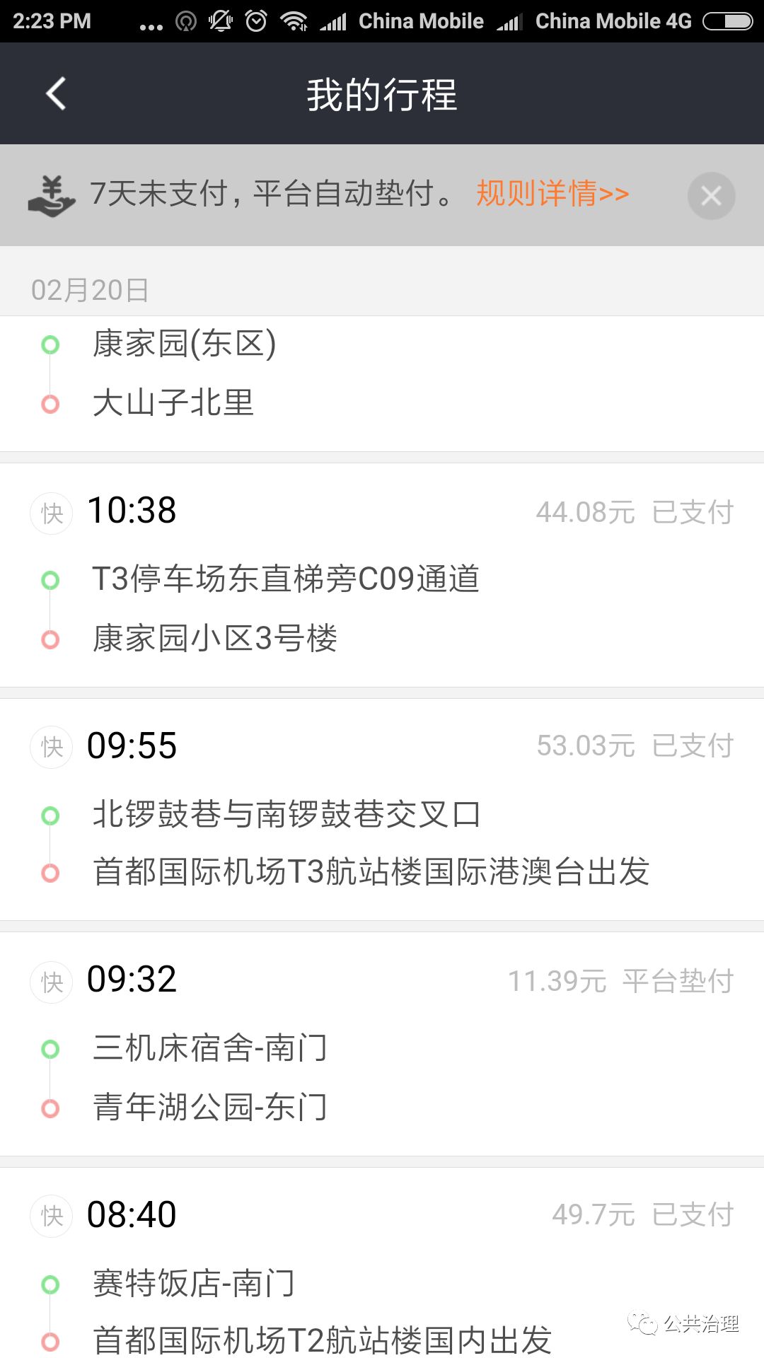 顺利到机场,高速公路也免费通行。回来路上没有接到单,不过半路上有乘客派单。他们一家老少四口去走亲戚,顺便到莲湖公园玩。城内停车难,胡同里七拐八拐,他们选择网约车。