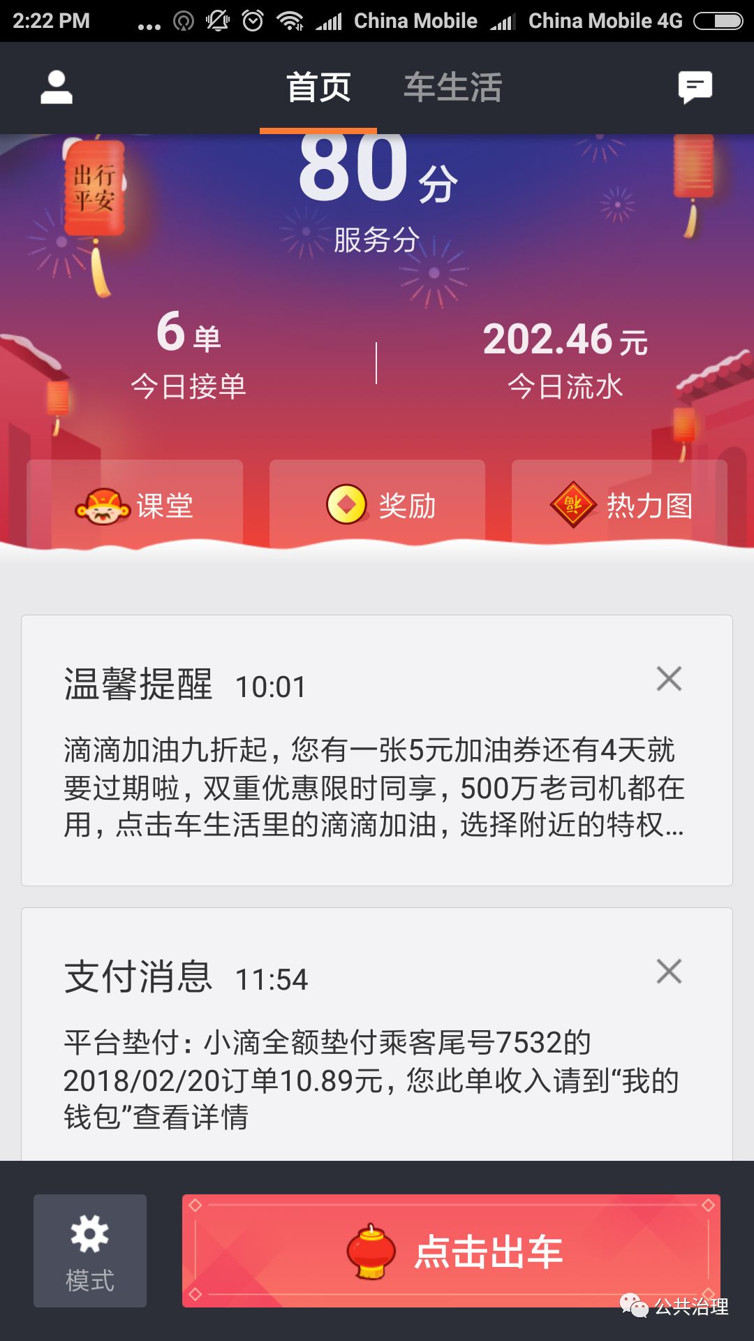 中午收车回家,顺路买了麦当劳。家里老妈和儿子该吃饭了,我也要接班抱闺女睡觉了。一上午三个多小时,六单流水205元,电量用去60%。我想,哪怕以后国家停办大学,不需要论文了,失业了也可以开出租车养家糊口。重要的或许不是赚闲钱,而是可以一路听不同的故事,体味不同的人生百态吧。上课的时候,是不是也可以聊一聊?