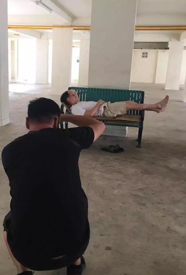 帖子中的图,有他“露宿长椅”的样子,有他“衣不蔽体”的镜头……而最关键的是,耿直的黄国光竟然把摄影师也拍了进来,这不明摆着告诉大家,这是在摆拍嘛!