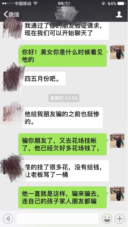 之后,我在另一部手机里发现在我怀孕生孩子时,他和其他女人在一起的照片。后来女孩子还打电话给我,让他把花场欠的钱还上,并说他们住在一起几个月了。
