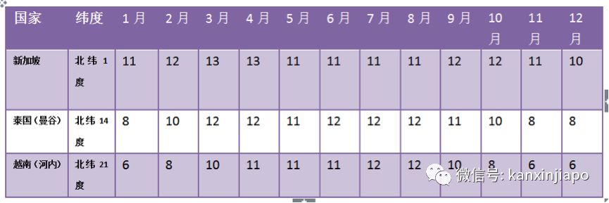 对比一下世界卫生组织发布的东南亚国家UV数值(每个月21日检测),新加坡的指数比泰国、越南高出不少。