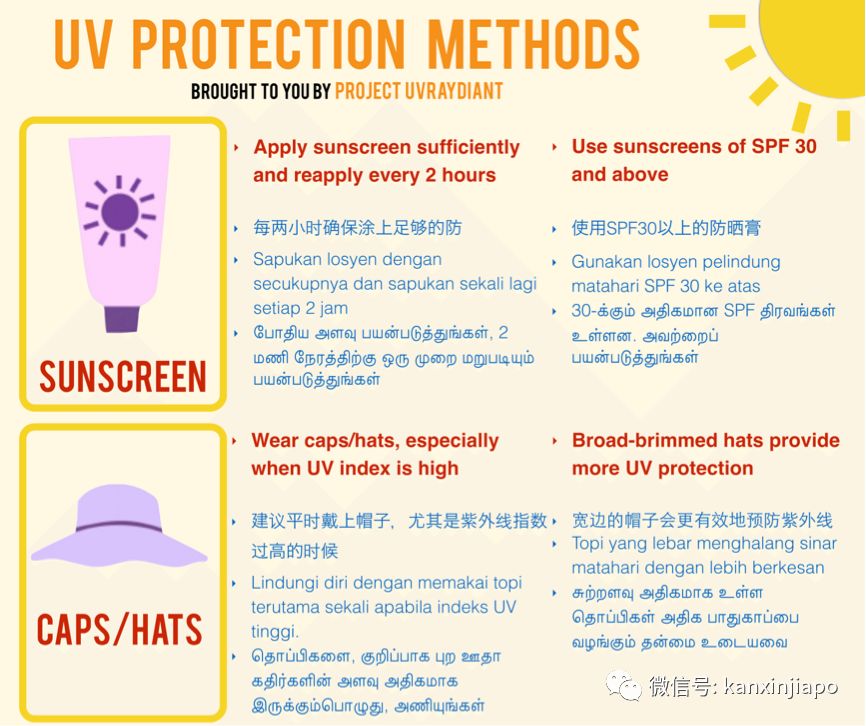新加坡还特别发布了防晒指南,大家快快学起来~
