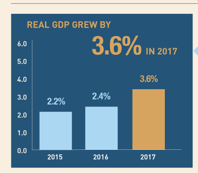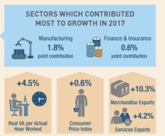 2017年初,由于2016年经济增长水平差强人意,而且全球经济形势严峻,贸工部预测经济增长幅度在1.5%到3.5%之间。今年的经济增幅超出预期,部门将此归功于市场的强势表现。