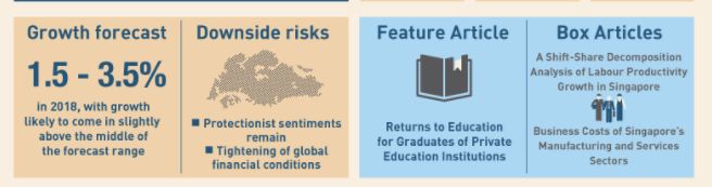 服务业也为经济做贡献:前几天发布的旅游报告,显示去年新加坡的旅游业增长了不少。其实从服务业整体来看,金融、保险、批发和零售等各个方面表现得都不错。而且随着消费水平的提高,预计2018年服务行业会持续发展。