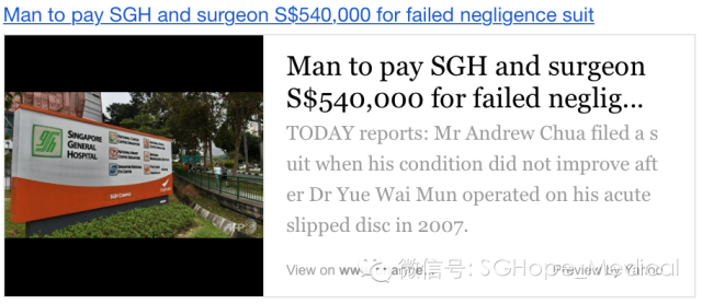 前不久我就听朋友说KK医院因为诊断错误,将一位来自中国的新移民小朋友没有发炎的阑尾切除,而主动向孩子家长提出赔偿以获得合解。2007年,本地有位老妇因为被注射了过量的放射性碘而患上了甲状腺疾病,后来还诊断出淋巴癌。最终,老妇和她的家人与医院达成了庭外和解,并获得经济赔偿。2009年,Narindar Kaur女士在活体捐肾手术后发生大出血而去世,最终高庭判定医院有流程上的疏失,而医院与死者家属达成了赔偿协议。