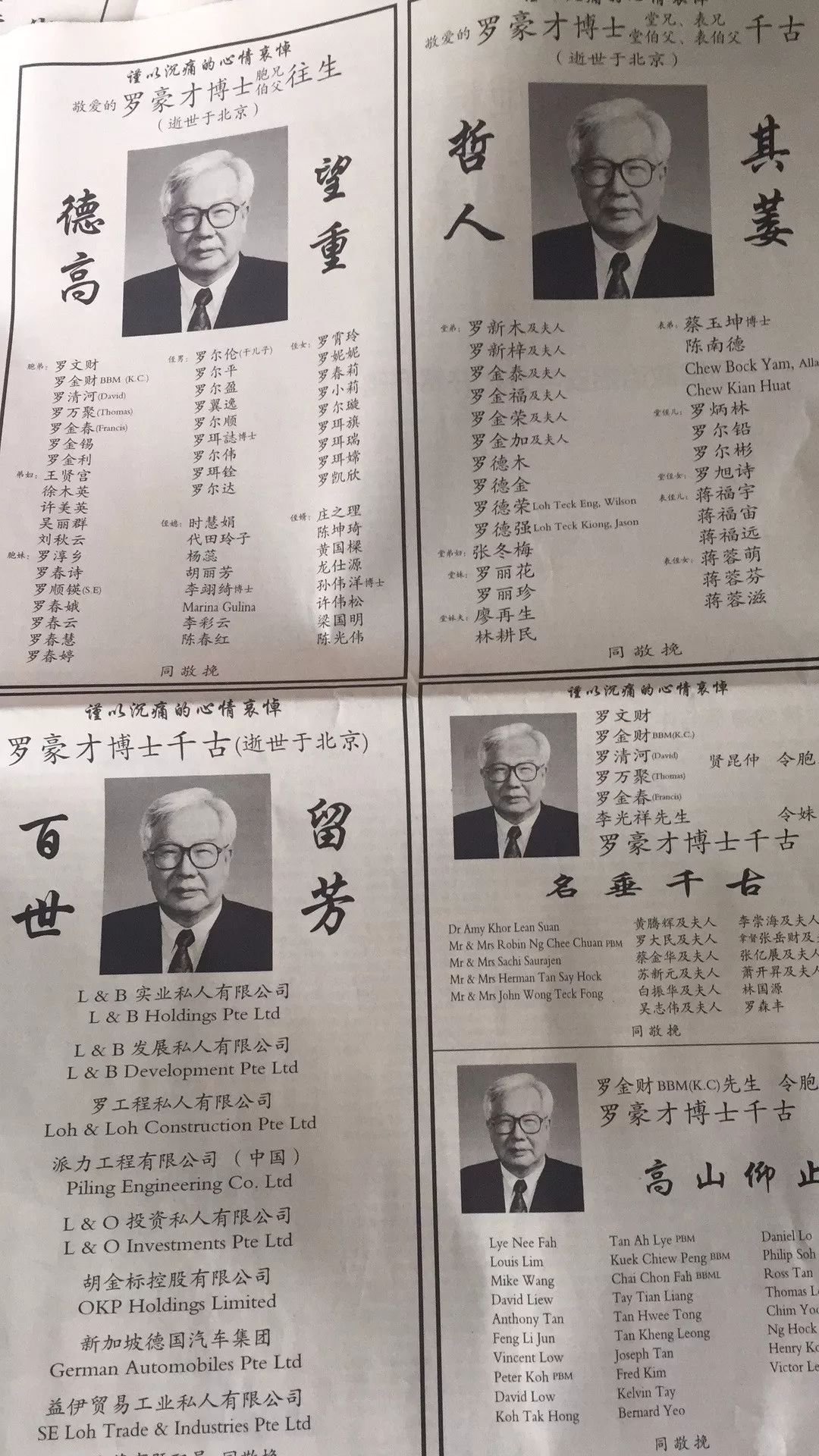 在2018年狗年春节来到之前,新加坡联合早报出现这样的追思。许多名人发帖。看来逝者身份非同一般。