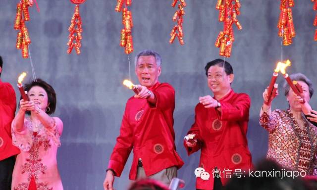 (一年新加坡的牛车水亮灯仪式上,李显龙总理点鞭炮的表情特写)