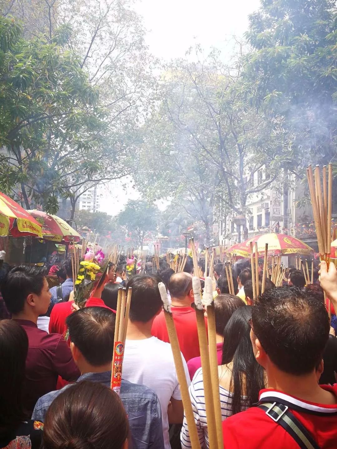 新加坡民间最信服的四马路观音庙,新春抢头香,人头涌动,热闹非凡。