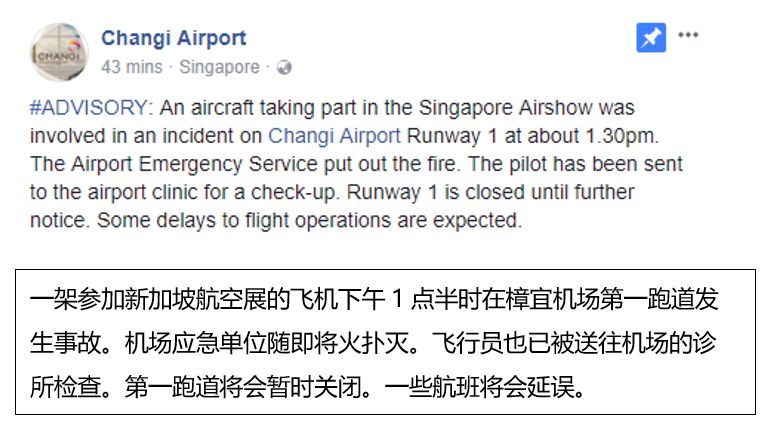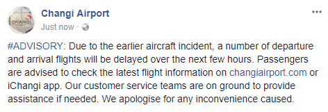 下午2点24分,樟宜机场的官方面薄贴出告示: