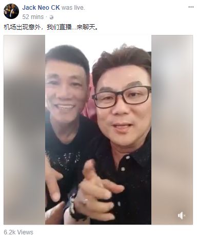 新加坡导演梁志强也受影响,原本打算搭机前往马来西亚参加《新兵正传4》庆功宴的他,被困在飞机上,闷到在Facebook上直播,和网友聊天。