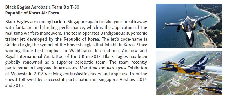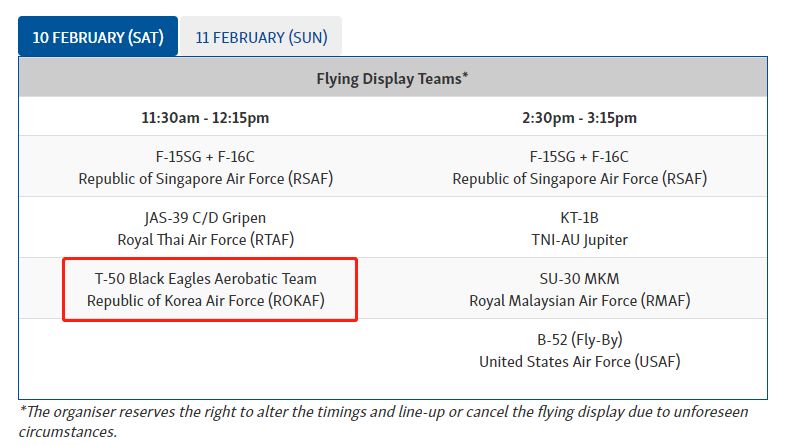 韩国“黑鹰”特技飞行队的八名飞行员,原本打算驾驶T-50在2月10日和11日表演特技飞行,算是这次新加坡航空展的一大亮点,如今却因为事故而可能取消表演。