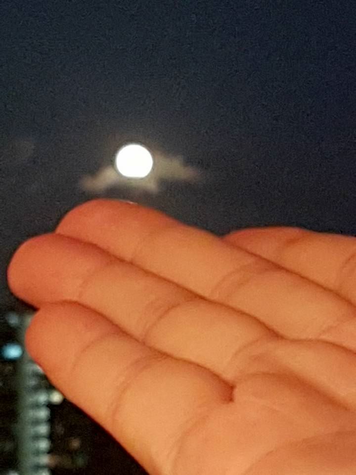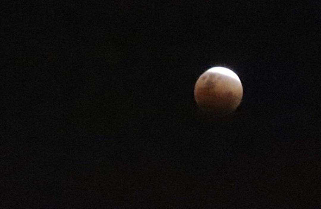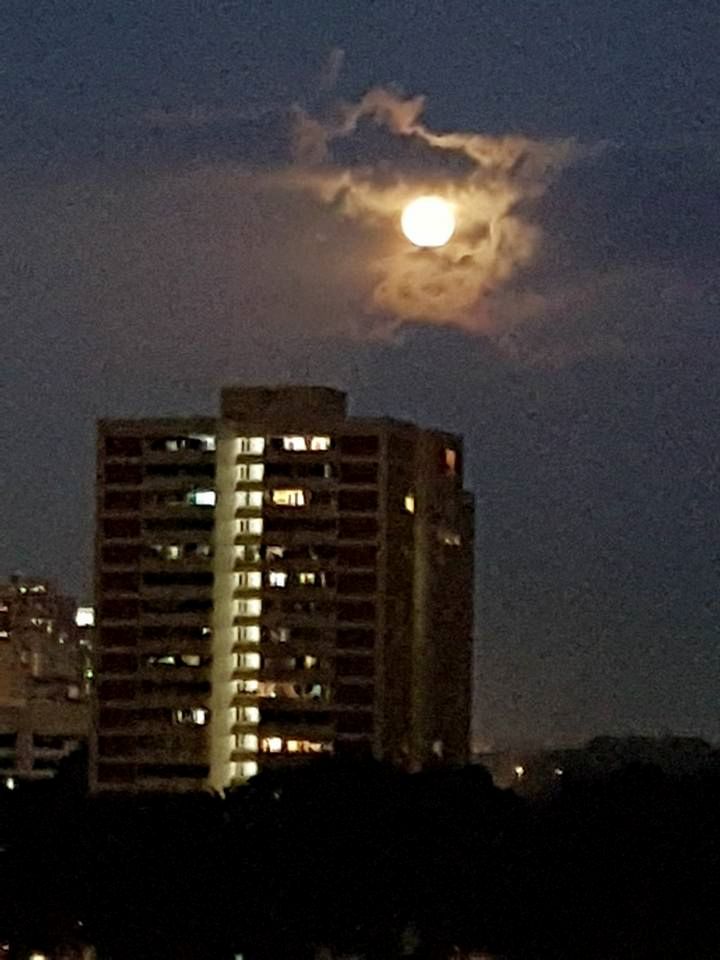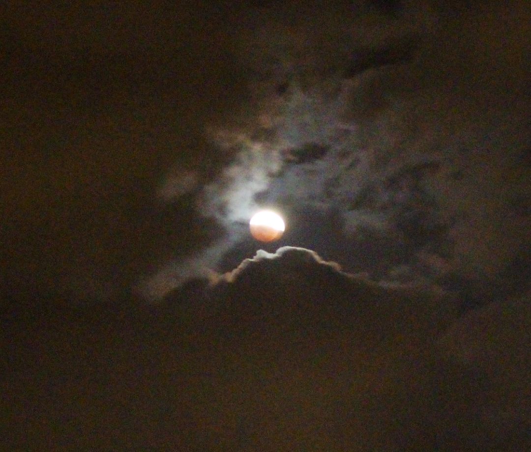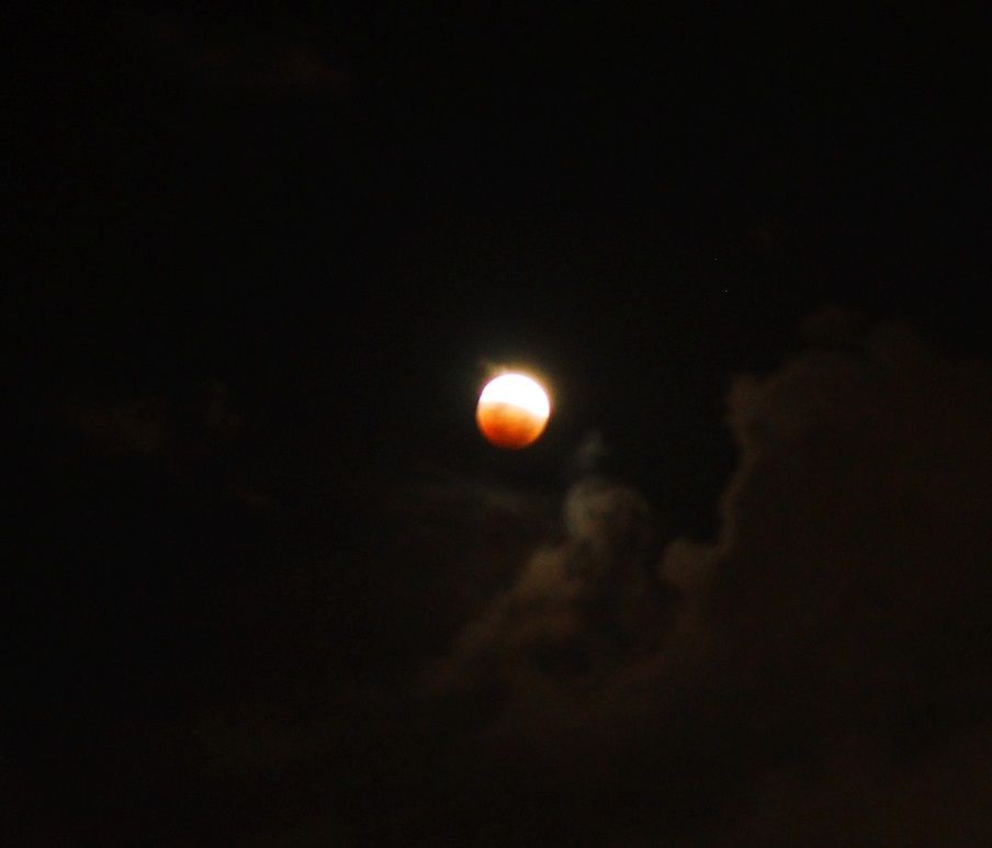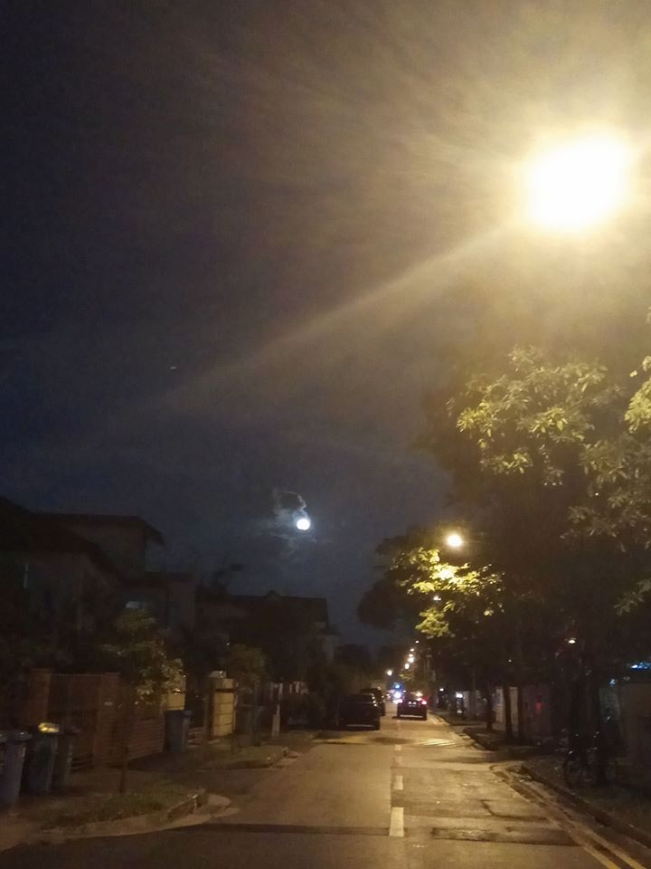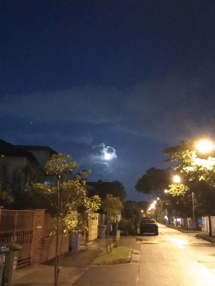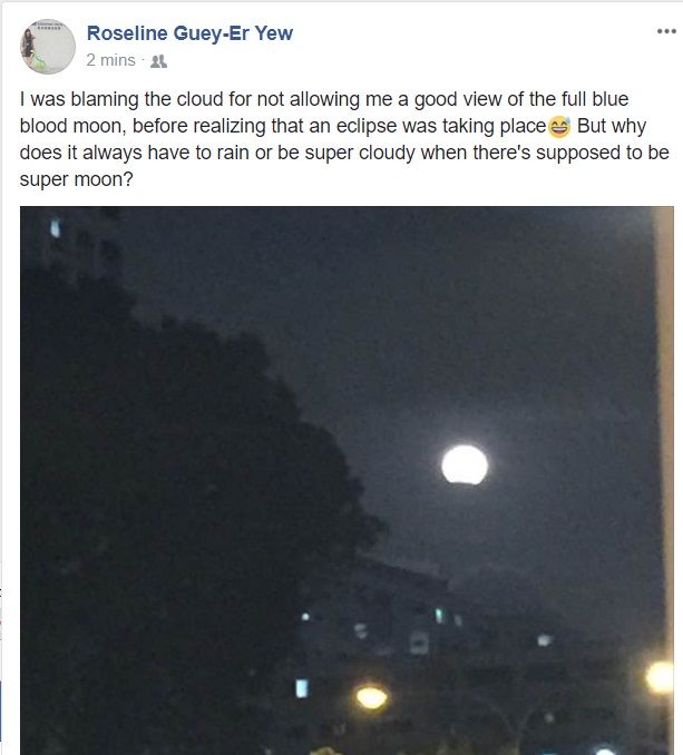 Roseline Guey-Er Yew: 刚才还在怪乌云让我无法看清楚蓝月亮,才发现月食已经开始。但为什么每次有超级月亮出现,都总要下雨或乌云满布呢?