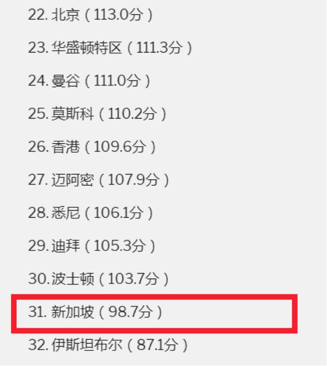 是的,新加坡排在倒数第二位,而这项调查是咨询了1万5000名都市人,根据文化、饮食、友善度、宜居度、生活费和快乐指数得出的结论。也就是说,普世认知是:在新加坡生活真的是超!级!闷!啊!