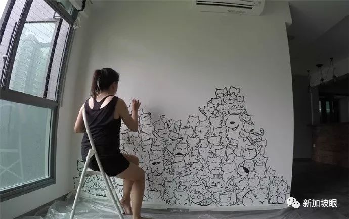 那不看网红,我自己在马路边画圈圈玩总行了吧?注意!在新加坡涂鸦犯法,一不小心就会被鞭刑!但是不要捉急,你可以在家里画嘛,最近就有个新加坡艺术家凭着在墙上画的猫而走红~