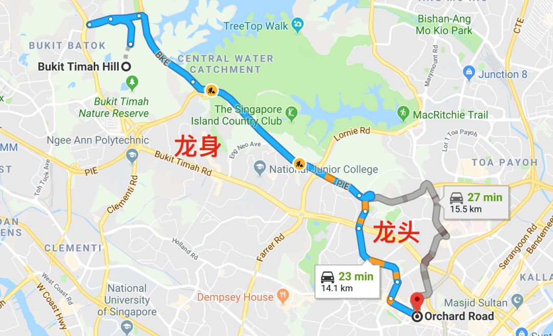 新加坡多条龙脉纵横,武吉知马山就是其中一支。从武吉知马山出来的这条龙脉,一路向南延伸,而龙抬头的地方,正是乌节路!配合新加坡的路线分布,确实隐约可以看到一条龙啊……