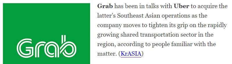 传言Grab正在洽谈收购Uber在东南亚的运营事宜!
