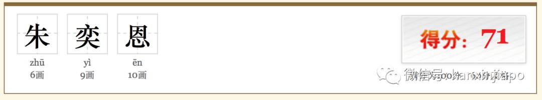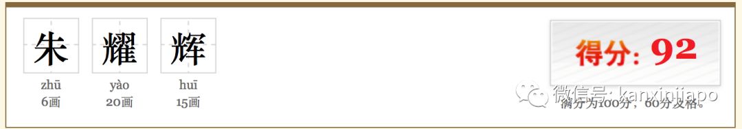 朱老伯却认为,男方为孩子取名是华人的“老理儿”,儿媳不听话就是不孝顺!最最关键的是,朱老伯还特别查阅资料,发现他取的“朱耀辉”这个名字有90分,而儿媳取的“朱奕恩”只有71分。