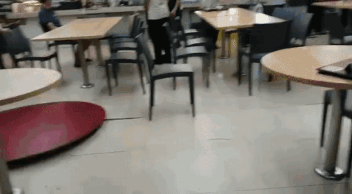 突然的爆炸声,吓坏了当时在场食客,大家纷纷逃离现场。许多店家用圆桌覆盖在破裂的地砖上,以防有人踏上后受伤。
