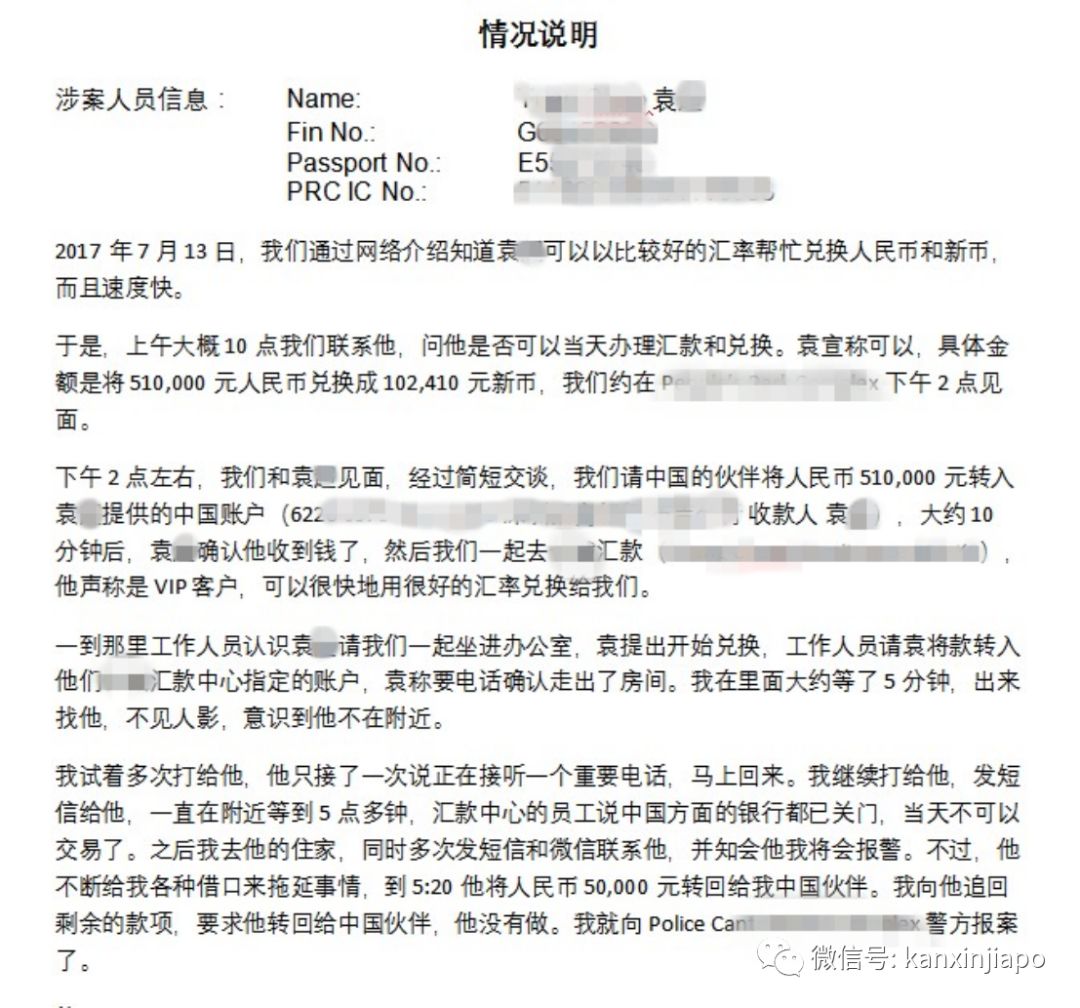 “我在新加坡换钱,对方拿了50万RMB后不见人”