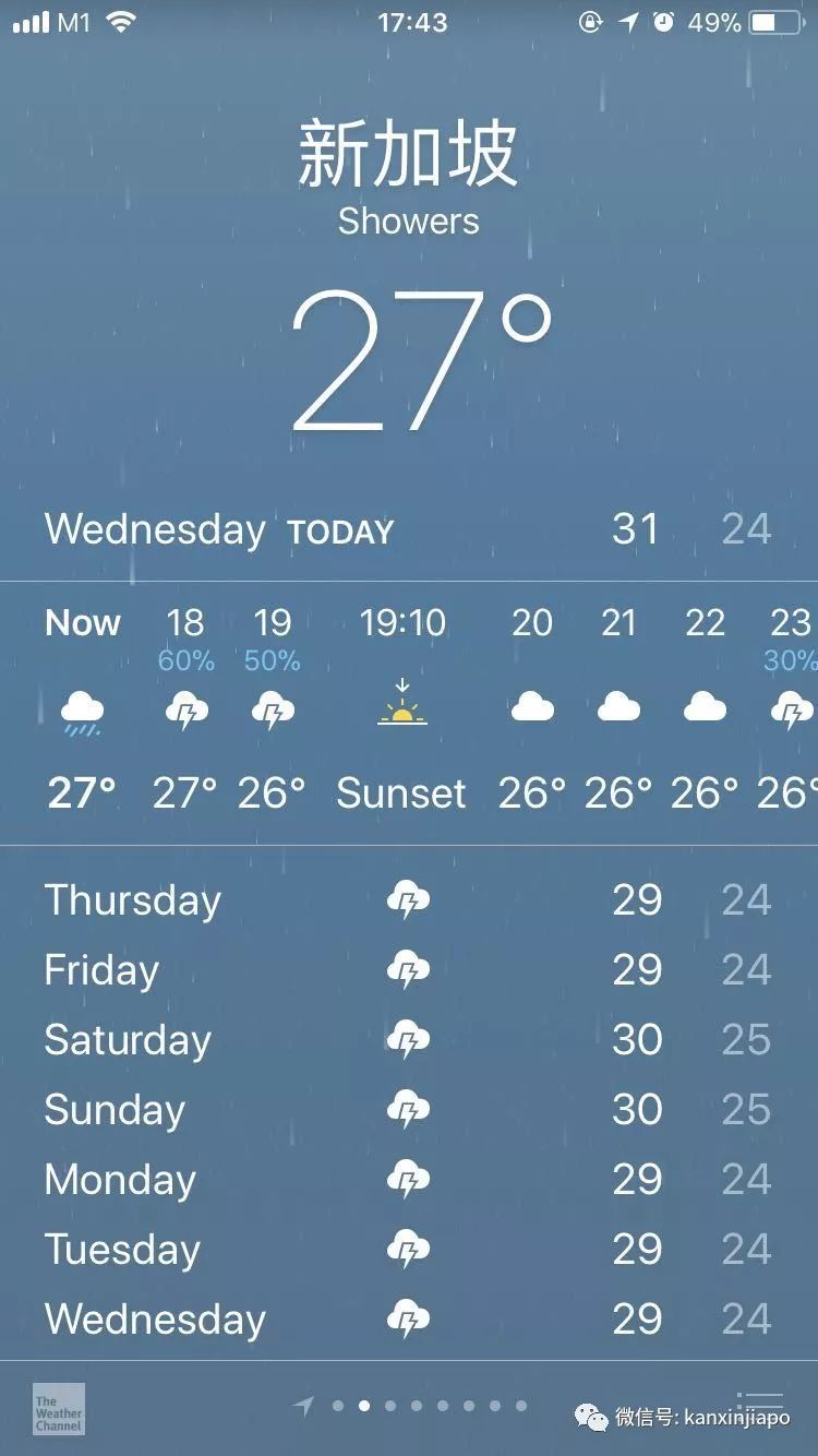 (截止今晚6点,新加坡部分地区温度已经降到了23.5摄氏度!)