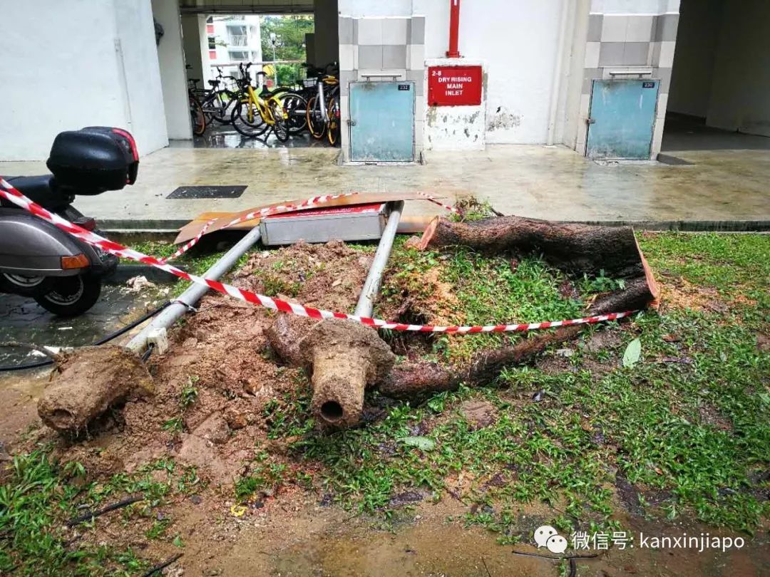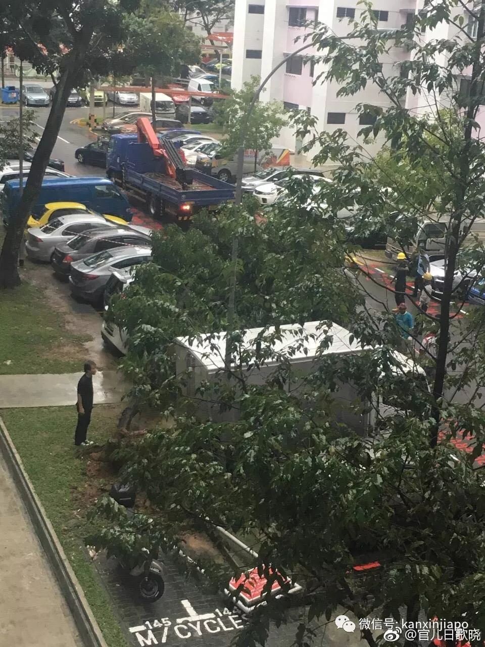 新加坡眼读者昨天在武吉巴督大牌211楼下的停车场,看到有一棵树被风雨吹倒。