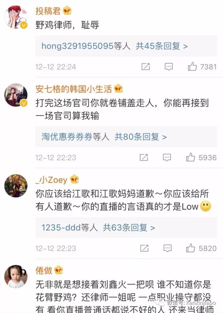 不管是江歌案、还是虐死妹妹案,吃瓜群众纷纷享受了口舌之快。可是大家好像忘了:谁都没有权利去剥夺他人生命,谁也没有权力去谴责别人的职业自由。这个社会最终还是要靠法律来维护的!