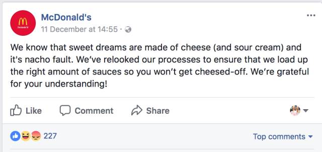 然而,网友投诉还不算完,麦当劳事件一经曝出,肯德基立刻在Facebook发文:“我们新的薯条比以往更香脆和美味,将让你们欲罢不能!”。