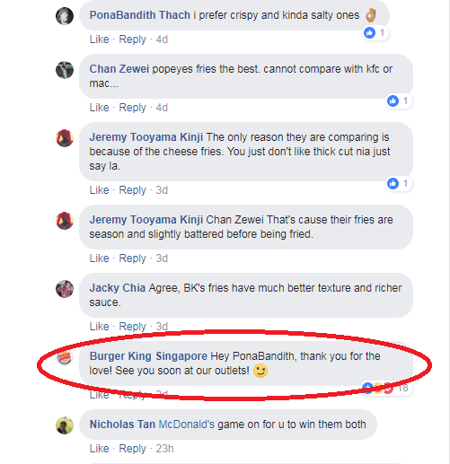 然而,爱搞事的网友却跟肯德基留言,说他觉得汉堡王的薯条更好吃。汉堡王突然被翻牌兴奋不已,回复这位网友:“欢迎你再来汉堡王吃哦~”