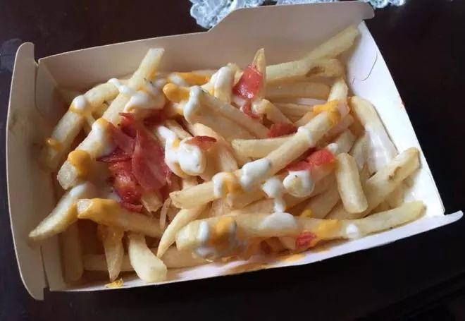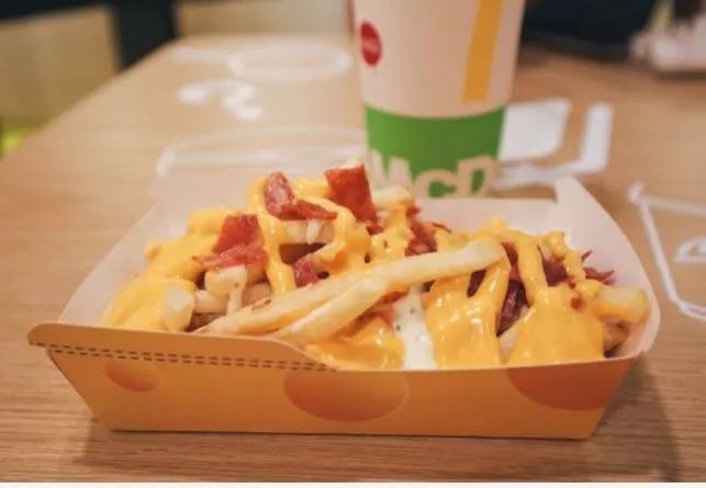 哇!满满的芝士和培根,看着就超好吃!这是麦当劳最近推出的全新Cheesy Loaded Fries,也是一般非智障正常人所理解的芝士培根薯条。