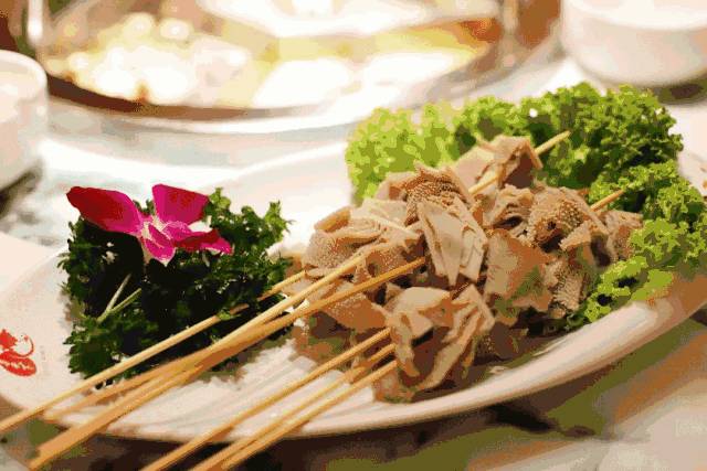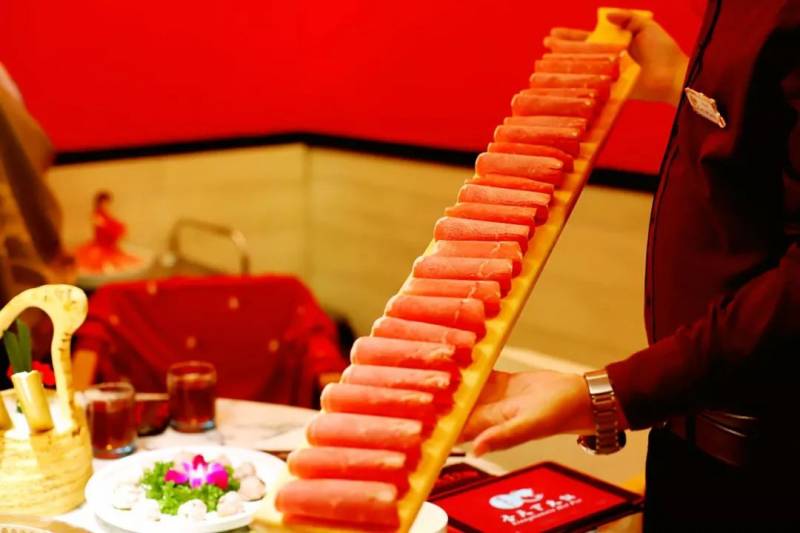 (选用澳洲新鲜羔羊肉,然后裹卷冷冻刨片,涮个10秒后沾碟食用)