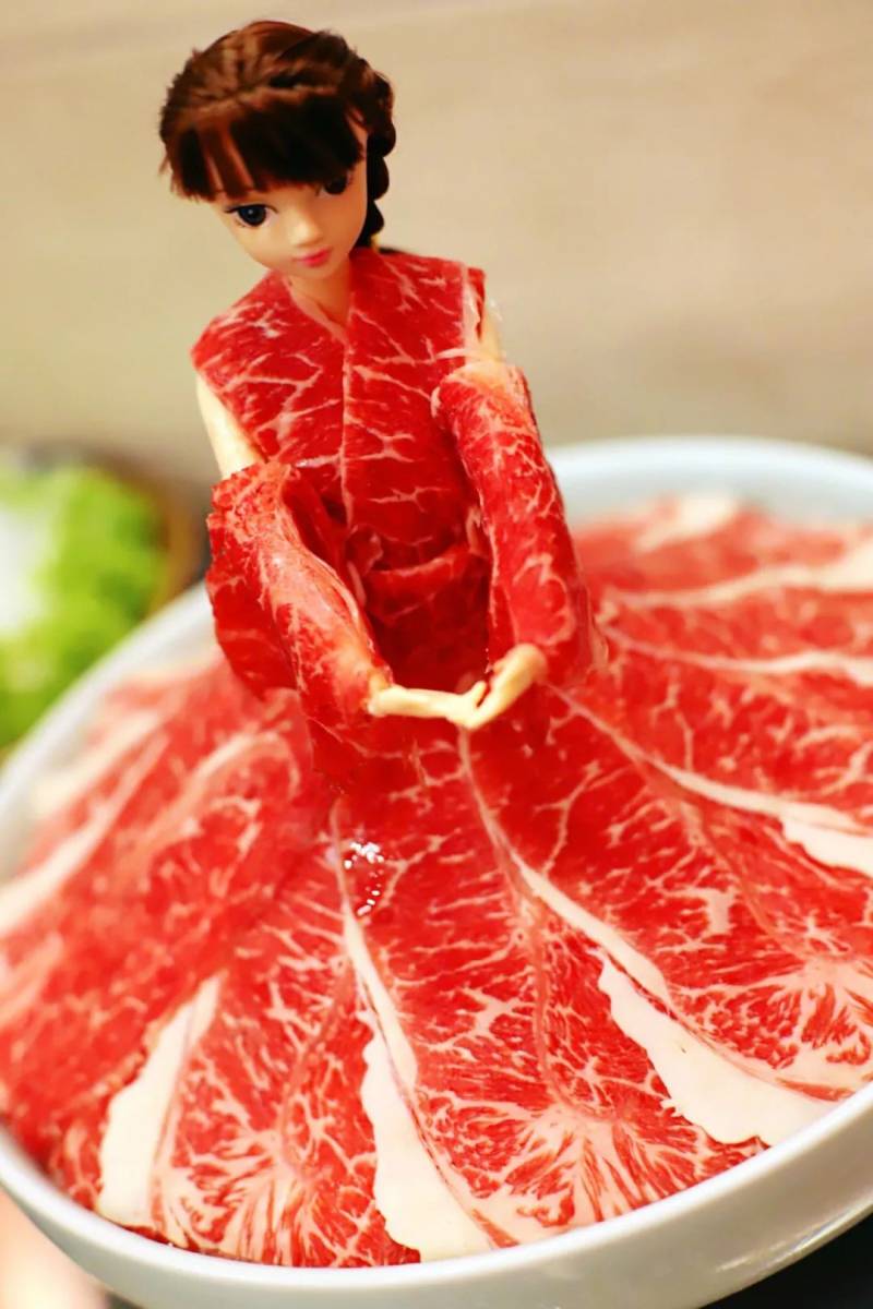 脑洞大开的摆盘,已在网上火过一轮,特别是芭比和牛。不是所有的牛肉都能做得这么美,要用颜色红润、雪花纹理明显的,才像一件华服。