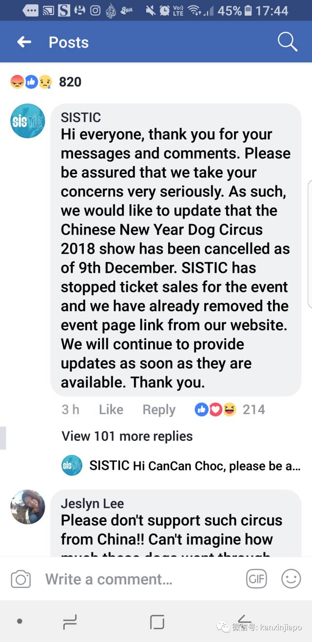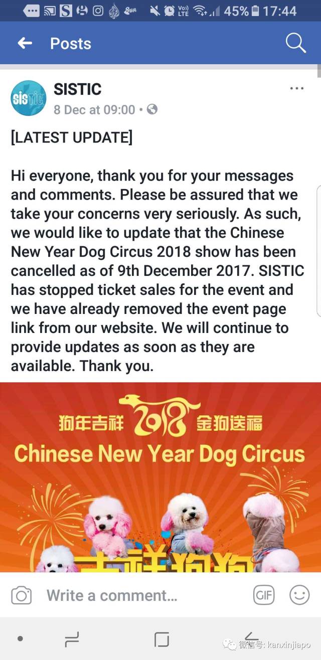 这场原定在圣淘沙名胜世界剧场演出的“吉祥狗狗杂技贺新年”,是昨天早上(12月8日)开始在SISTIC售票,没想到刚推出就引来大波网友抗议。