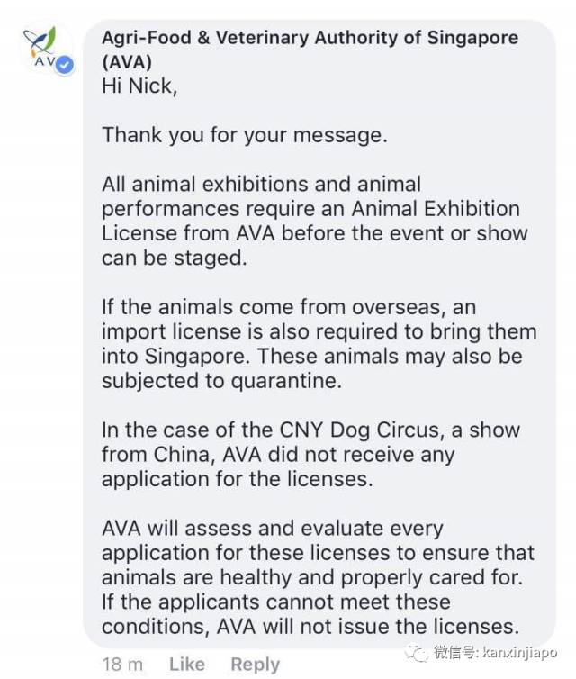 任何动物展或动物表演,都必须有事先发出的动物展示执照。如果动物来自海外的话,还必须申请进口执照,并有可能要进行隔离。只有确保动物的健康良好,并得到了妥善照顾,我们才会发出执照。我们还没有接到这个狗狗杂技团的执照申请。