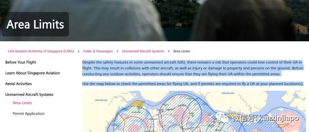 新加坡民航局官网规定,无人机有可能导致与其他飞机碰撞,只能指定区域飞行。违规飞行,被抓后可被罚款高达2万元新币,或长达12个月监禁。