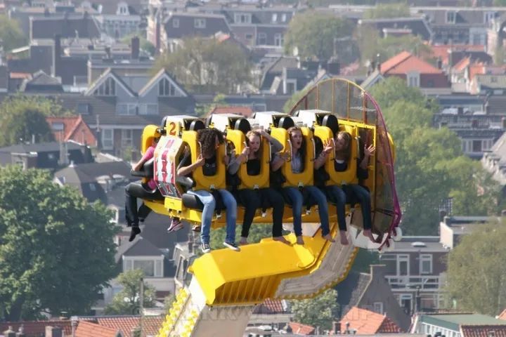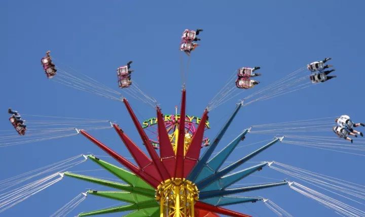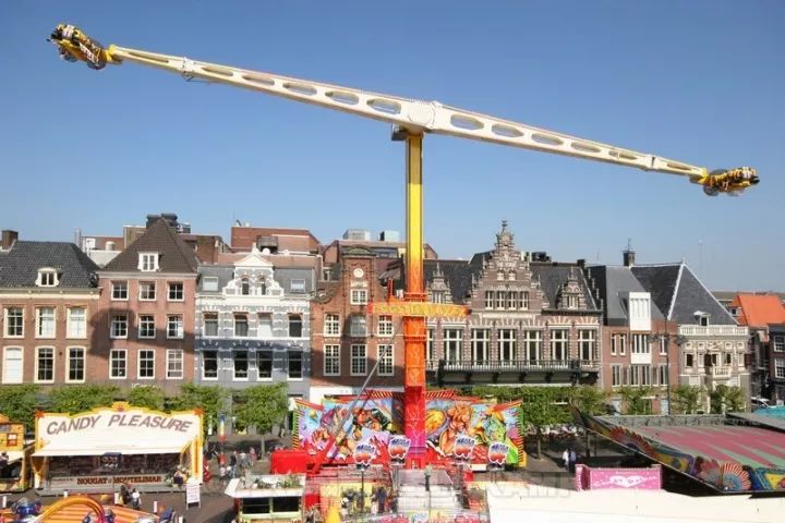▲最高的“BOOSTER MAXX”高达55米(近20层楼辣么高),小伙伴坐在大梁柱的两端,被空中的钢铁臂挥上挥下。