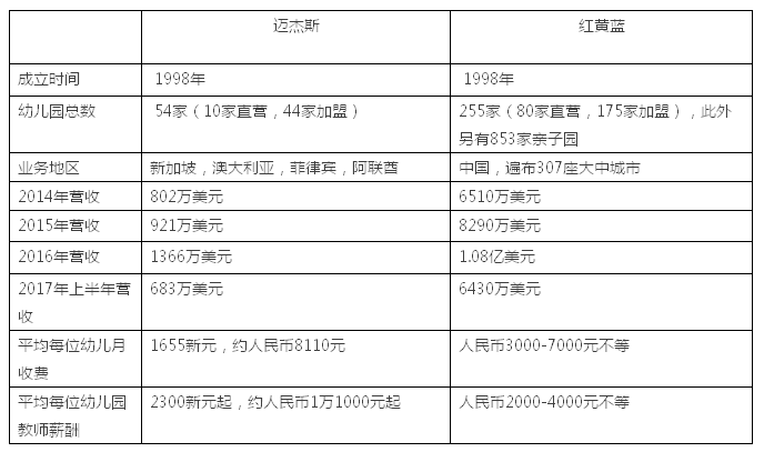回到两家公司的数据对比,且不说在同样的发展时间内,红黄蓝的幼儿园和亲子园总数达到了迈杰斯的20倍。根据招股书的数字,迈杰斯的每家幼儿园平均学生总数在2014-2017年之间一直稳定的维持在110人上下,而红黄蓝在其投资人大会曾公布,旗下的幼儿园规模多在220人左右,最多可达近500人。
