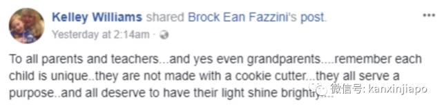 大意为:所有家长、老师、祖父母们,请记住你们的孩子是独一无二的,他们都有自己的闪光点。