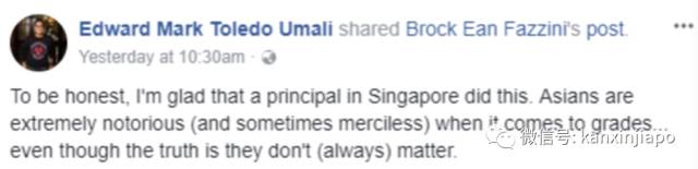 大意为:很高兴新加坡有这样一位校长,亚洲人非常在乎孩子的成绩,即使他们通常看似不在乎。