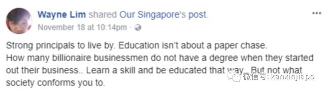 大意为:教育不只是一张纸的文凭。多少亿万富翁在开始做生意的时候都没有学位,学习一门技能也能在社会中立足。