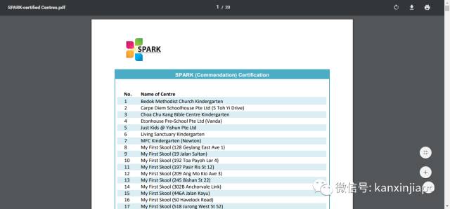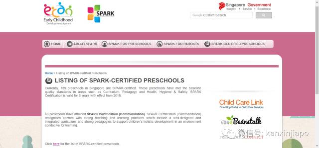 这个机构叫SPARK,全称Singapore Pre-school Accreditation Framework,中译为《新加坡学前教育认证框架》。这个认证体系由新加坡教育部所推出,于2011年开始实施,目的是为了提高幼儿园在教学、行政和管理方面的水平,以保障新加坡学前教育的教育质量。
