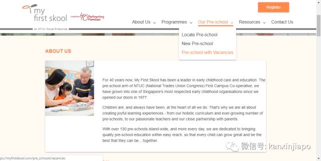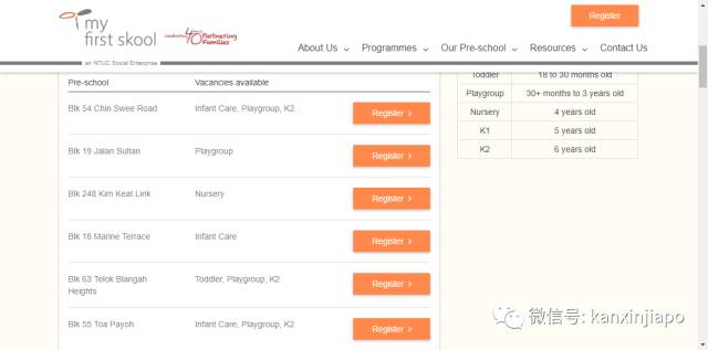 直接进入MFS的官网,查看是否有空位。网站将全岛所有MFS空位幼儿园都显示出来。