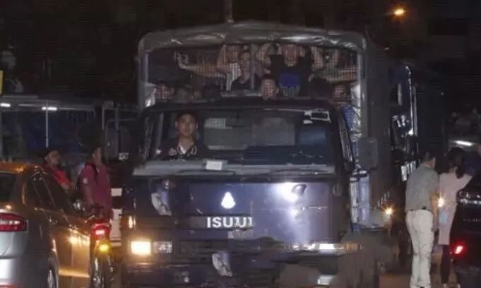 ▲大马警方出动两辆卡车拉人